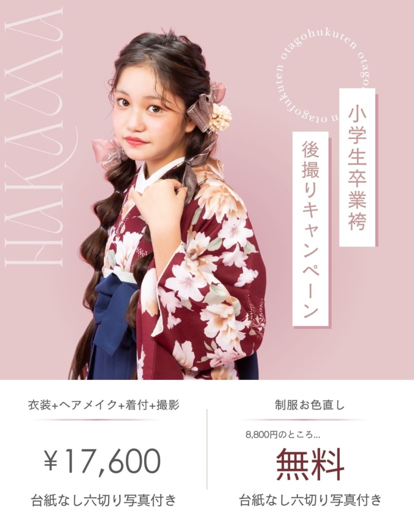 小学校卒業袴 後撮りキャンペーン 開催中📢