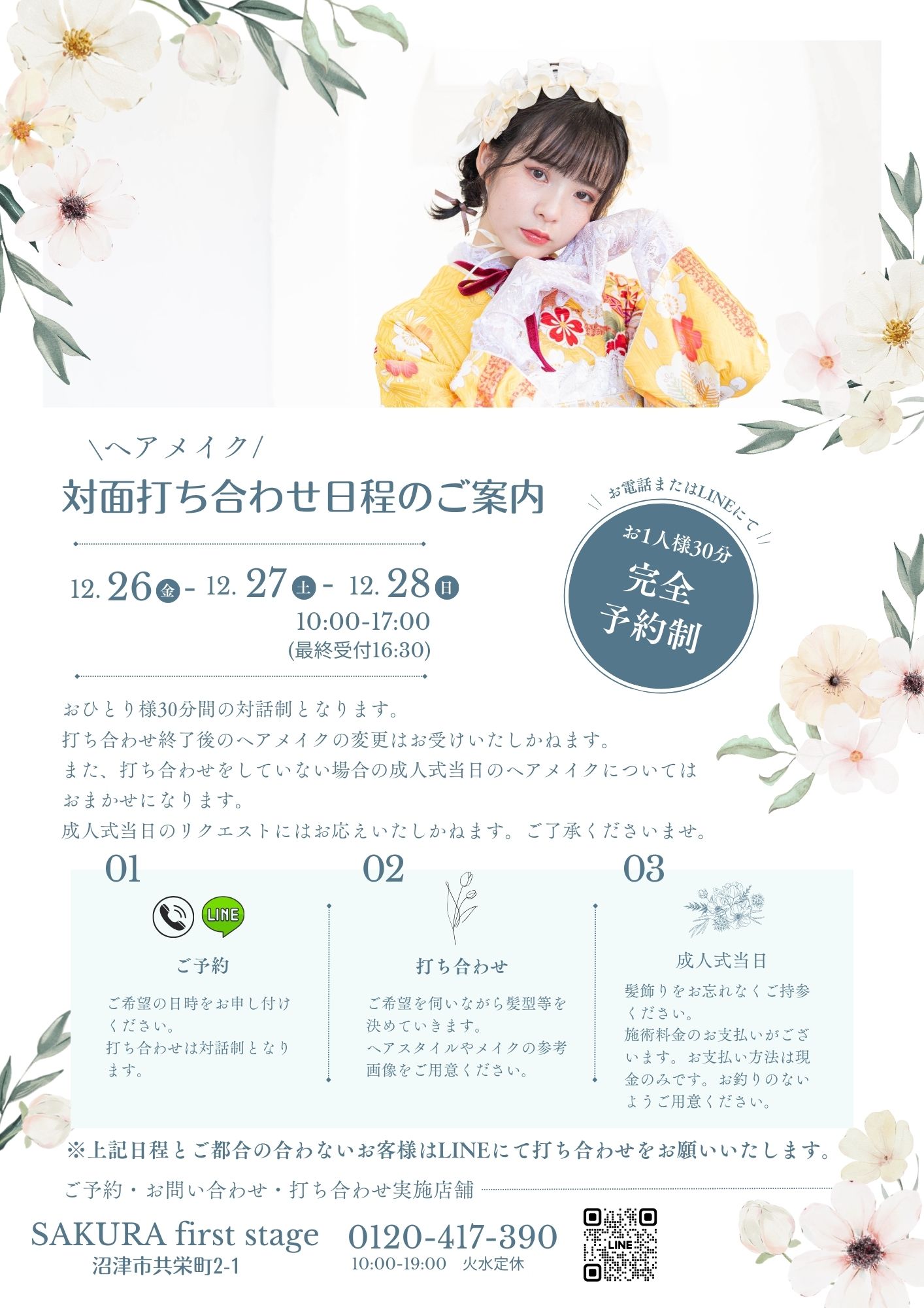 ※ヘアメイクの打ち合わせは12月30日 17:00までとなります